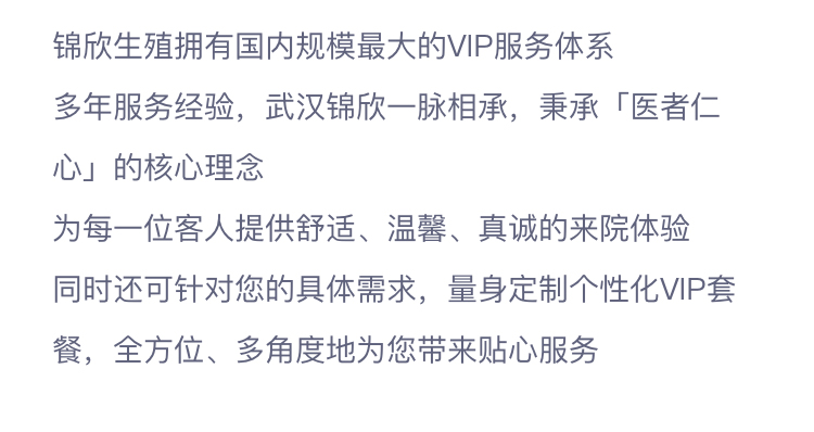 多年服务经验,武汉锦欣一脉相承,秉承「医者仁心」的核心理念